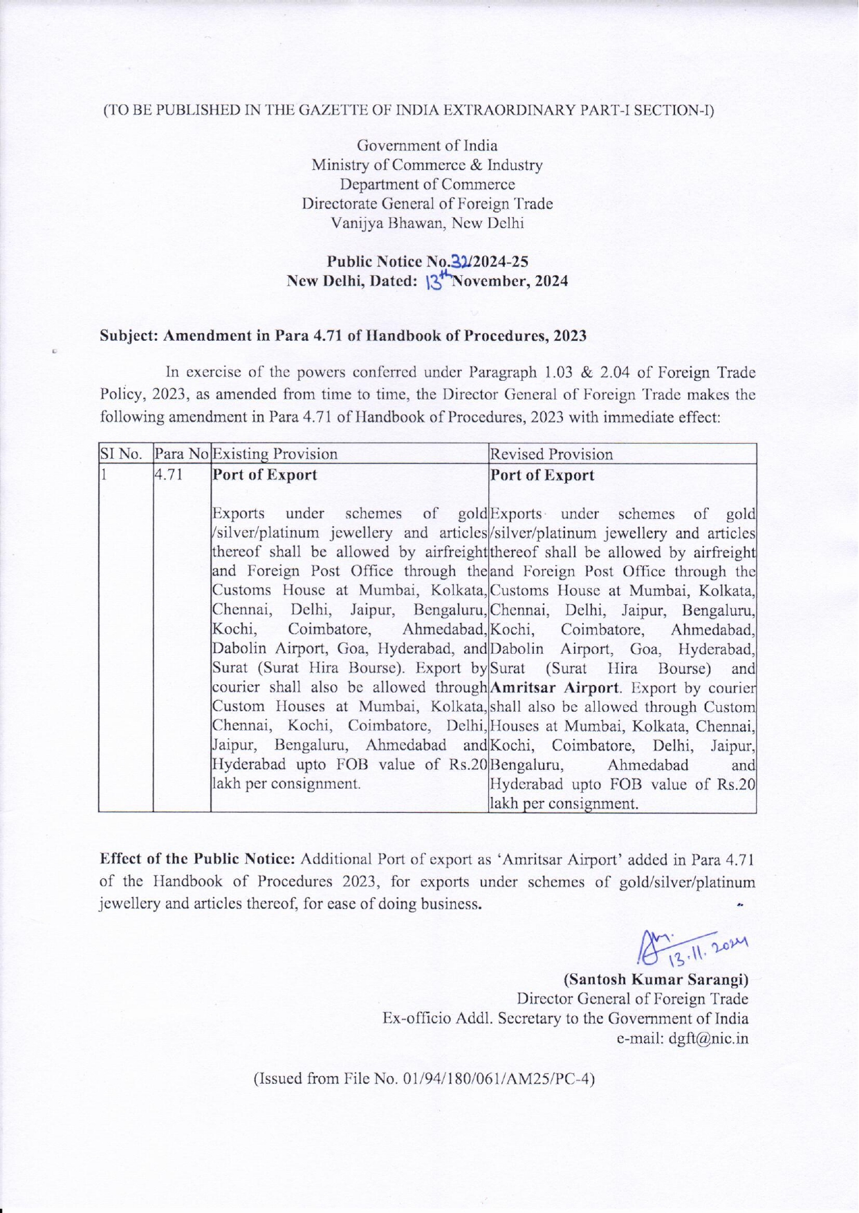 Amritsar Airport Added as Export Port for Gold, Silver, and Platinum jewelry Posted On November 19, 2024 Tags:DGFT Notification Related Posts Non-Basmati White Rice Export Policy Revised: From Prohibited to Fee Subject to MEP of 490 $ Per Ton Minimum Export Price for the export of Non-Basmati White Rice has been lifted with immediate effect DGFT Revises Import Policy: Precious Metal Compounds Now Restricted Under Chapter 28 About The Author admin Add a Comment Cancel replyYour email address will not be published. Required fields are marked *Comment Save my name, email, and website in this browser for the next time I comment.