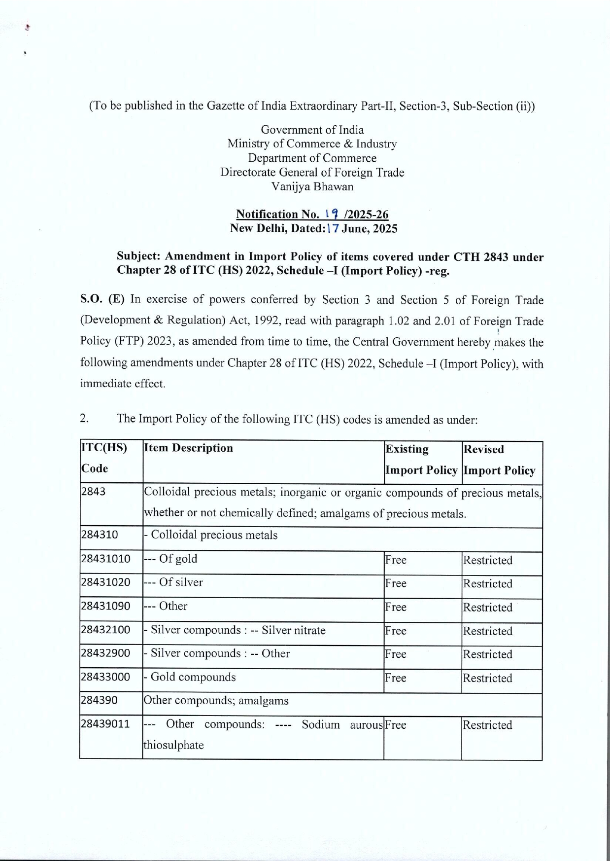 DGFT Revises Import Policy: Precious Metal Compounds Now Restricted Under Chapter 28 Posted On June 17, 2025 Related Posts Extension for the period of exports of broken rice from 30th Sep 2022 to 15 Oct 2022. MEP Imposed Onions’ Export Free till 31st Dec ’23 Important Update on Gold Import Policy About The Author admin Add a Comment Cancel replyYour email address will not be published. Required fields are marked *Comment Save my name, email, and website in this browser for the next time I comment.