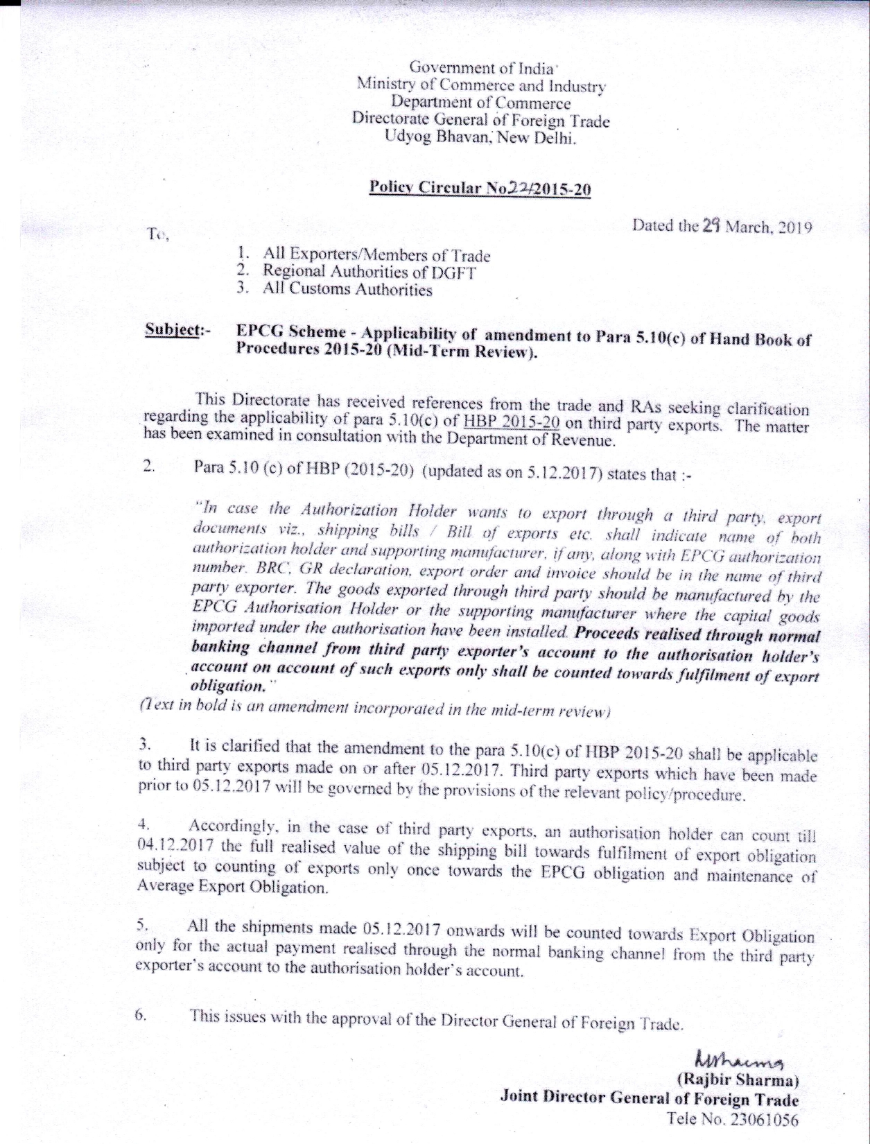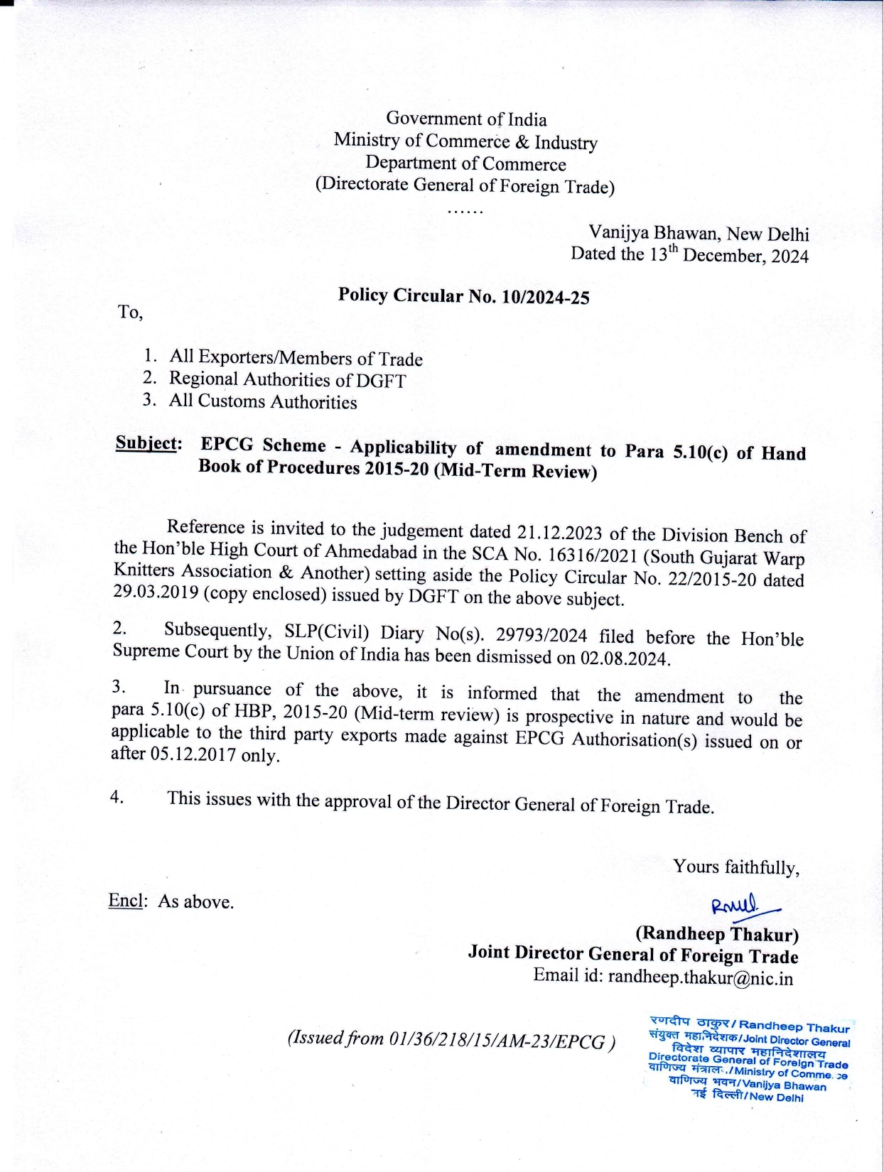 EPCG Scheme Update: Clear Guidelines on Para 5.10(c) Amendment Posted On December 24, 2024 Tags:DGFT Notification Related Posts Amendment Alert: ANF-2N Made Flexible for Pharma Grade Sugar Exports! Relief for Exporters: FTP 2023 Update DGFT Consultants Import of PET Flakes has been permitted subject to NOC from MoEF&CC and an authorisation from DGFT About The Author admin Add a Comment Cancel replyYour email address will not be published. Required fields are marked *Comment Save my name, email, and website in this browser for the next time I comment.